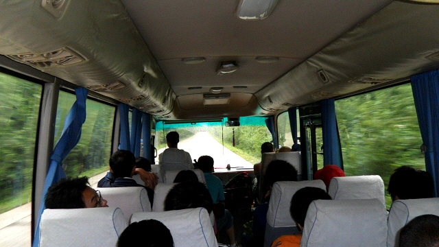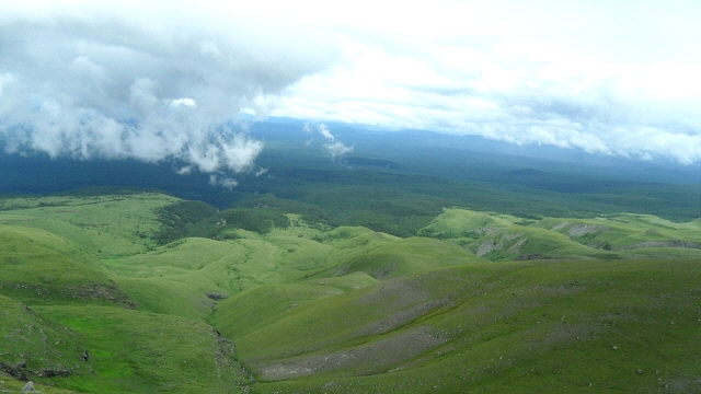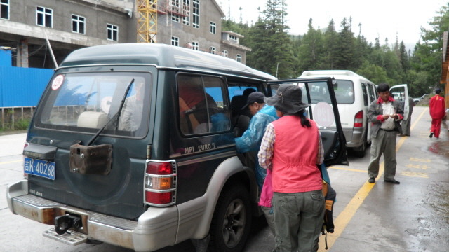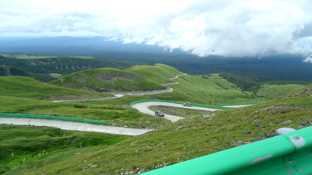13:50 내려가는 짚차를 타기 위해 줄을 섰다. 우리는 14:13에 9인승 승합차에 승차했는데 올라갈 때와는 다르게 조심스럽게 내려간다. 내려가며 보는 백두산의 초원이 너무 아름답다. 올라갈 때는 차를 하도 험하게 몰아 사진을 찍을 수 없었는데 내려올 때는 차분한 운전기사 덕에 여러 장 담을 수 있었다.