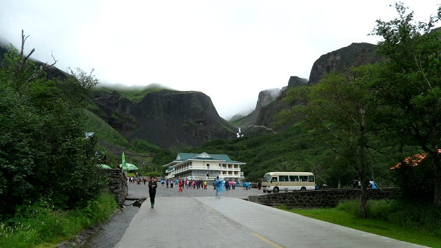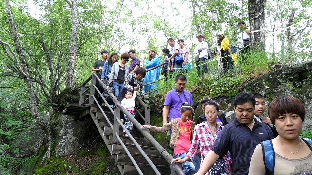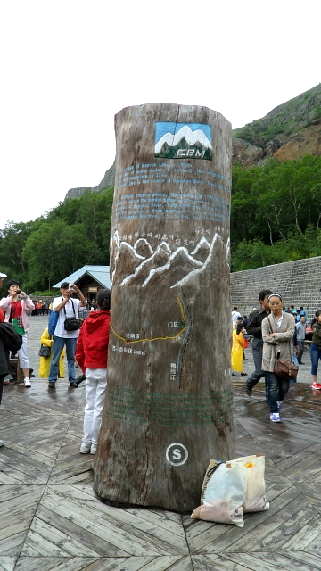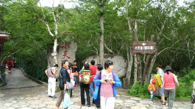 오늘은 중국쪽 백두산 관광에서 가장 많이 찾는다는 북파 코스를 다녀온다. 이도백하에서 북파 코스의 입구인 북파 산문까지는 40km 이내로 버스로 약 40여분 소요된다. 북파 코스의 경우 입장료와 공원 내의 셔틀버스비는 서파 코스와 동일하나(100元 + 85元) 보험(5元)은 선택사항이 아닌지 묻지도 않고 받는다. 따라서 입장에 필요한 경비만 1인당 190元이다. 북파 코스의 경우 이것으로 끝나지 않았다. 산문에서 셔틀버스를 타고 안으로 들어가면 10여분 남짓 걸려 환승주차장에서 모두 내리게 된다. 이곳에서 비룡폭포(중국 이름 "長白瀑布")로 가는 셔틀버스를 갈아탈 수 있다. 그러나 천지를 보기 위해서는 이곳에서 다시 80元짜리 표를 사서 Jeep나 미니버스를 타고 천문봉까지 올라가야한다. 이를 합하면 북파 코스의 경우 1인당 총 270元(2011년 7월 환율 170원으로 환산하면 약 46,000원)이 소요된다. 상당히 비싼편이다. 중국의 경우 국가에서 운영하는 공원이나 박물관 등의 입장료가 대체적으로 비싼편이다.