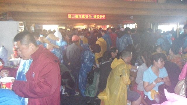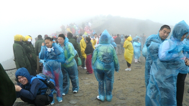 11:55 짚차에서 내리니 안개가 자욱하고 세찬 바람이 분다. 동행한 부인은 반팔 차림으로 왔다. 내가 춥지 않다고 해서 그렇게 왔다나? 기가 찰 노릇이다. 어제는 날이 맑아 별로 춥지 않았다. 비가 오는 날은 춥다고 하더라는 말을 어떻게 춥지 않다고 했단 말인가? 여하튼 그 부부는 50元씩 내고 두툼한 겉옷을 빌려 입었다.