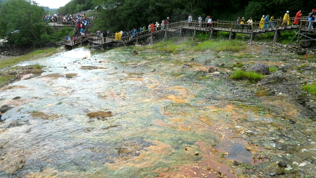 08:50-10:00 계곡을 건너 숲길을 따라 장백폭포 가까이에 올라섰다. 폭포가 멀리 있어서인지 그리 큰 폭포로 느껴지지 않는다. 주차장으로 다시 내려와 보니 온천물에 달걀과 옥수수를 익혀서 팔고 있다. 우리도 그냥 지나칠 수 없었다. 그런데 목포대 부부와 같이 다니는 게 불편함이 느껴진다. 두 사람의 말과 행동이 우리와 사뭇 다르니 어떻게 해야 할지 어정쩡하다. 그런데 그 부부는 내가 어찌 느끼는지 전혀 개의치 않는 그런 모습이다. 그렇다고 찢어져 각자 다니자고 할 노릇도 안 되고……… 여하튼 불편한 동행이다.
