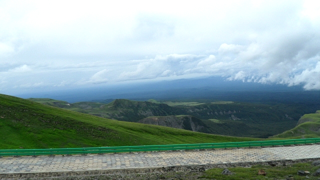 11:36 짚차에 올랐다. 출발하자 바로 급커브가 나타난다. 그런데 운전기사 이 친구는 어제의 버스기사 보다 더 과격히 차를 몰아댄다. 중국말이 자유로우면 한마디 하고 싶은데 그냥 그러려니 하며 몸을 실었다. 이러다가 굴러떨어지는게 아닌가라는 생각이 들었다. 초원지대가 나타나고 구름 속으로 들어간다. 과연 천지를 잠시라도 볼 수 있으려나?