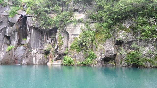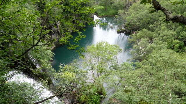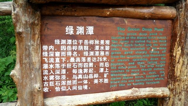 10:45 소천지 입구 건너편에는 錄淵潭 가는 이정표가 서 있기에 그곳으로 들어섰다. 가파르고 좁은 계단을 내려서는 길이라 모두들 천천히 움직인다. 바위 아래를 보니 폭포와 옥색 물빛의 호수가 있다. 소천지보다 더 나은 연못이다.