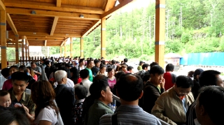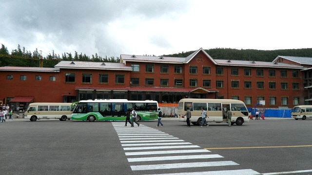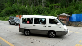 11:10 錄淵潭의 아래쪽 입구를 나서니 바로 셔틀버스 정류장이다. 그곳에서 셔틀버스에 승차하여 환승주차장으로 내려왔다. 이제 비는 멎었고 구름이 꽤 높은 곳으로 올라갔다. 천지가 열릴지는 아무도 모르는 일이다. 혹여 열리지 않는다고 해도 짚차 값이 아까울 것 같지는 않았다. 이제 백두산 정상으로 올라가기로 하고 짚차 승차권을 끊었다(80元/인).